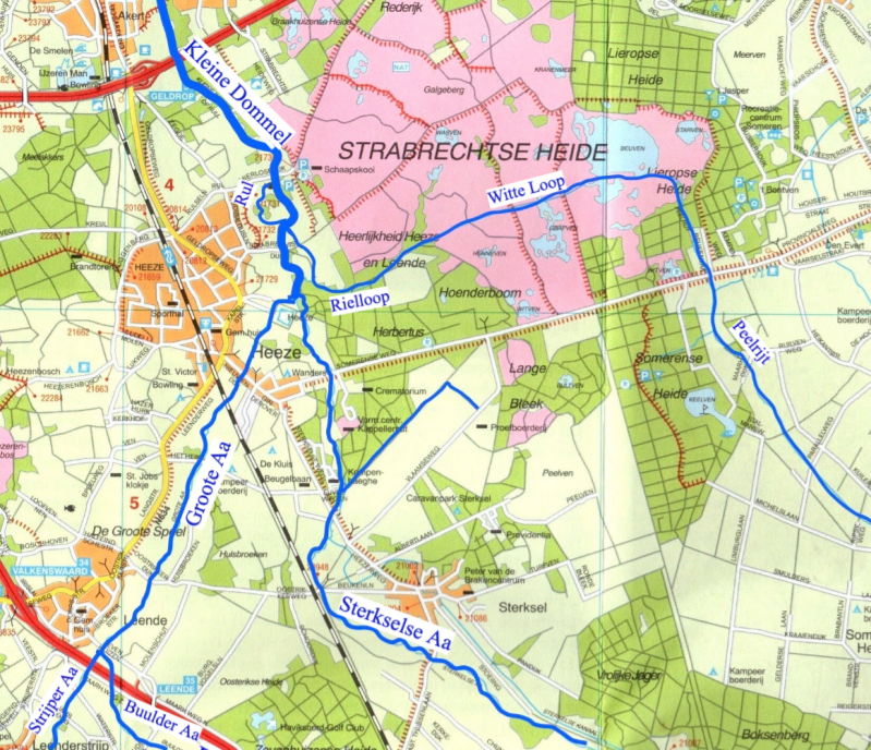 De Sterkselse Aa ontstaat uit verschillende beken ten oosten van Maarheeze. Gaat dan richting Heeze en komt bij het kasteel samen met de Groote Aa, om verder te gaan als de Kleine Dommel of Rul.