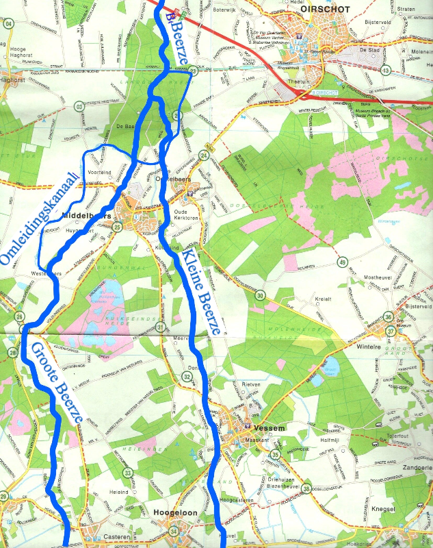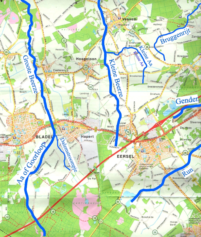 De beken in de regio Eersel-Oirschot ingetekend op een kaart van 1993.