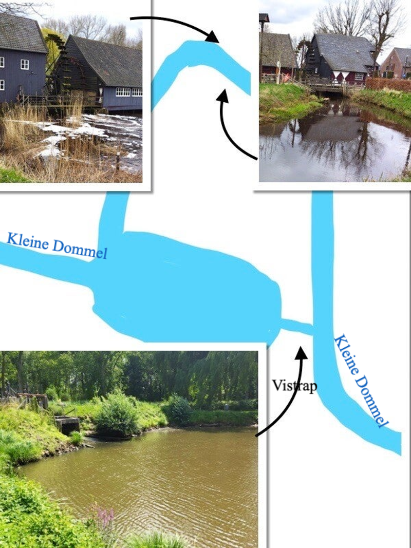 De vispassage komt naast de Collse Watermolen hier weer bij de Kleine Dommel.